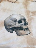 The skull comes from a demo transparency once included in a book about screenprinting. Part of To Be or Not To Be, a series of garments salvaged from fast fashion’s churn and turned into collectible objects. Each piece carries a second life, a story that doesn’t have to end with me.