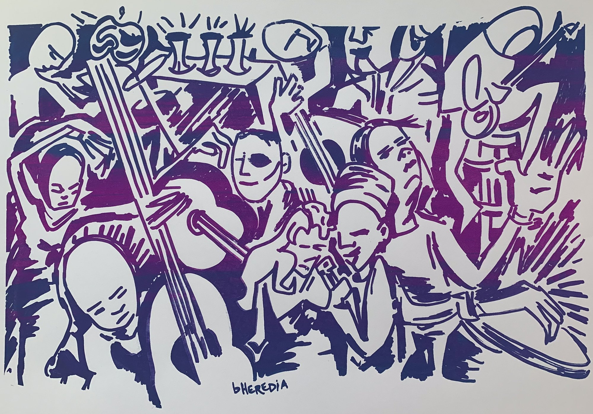 This piece comes from the same drawing as Quimbara but is pulled in a split of purple-to-blue ink.